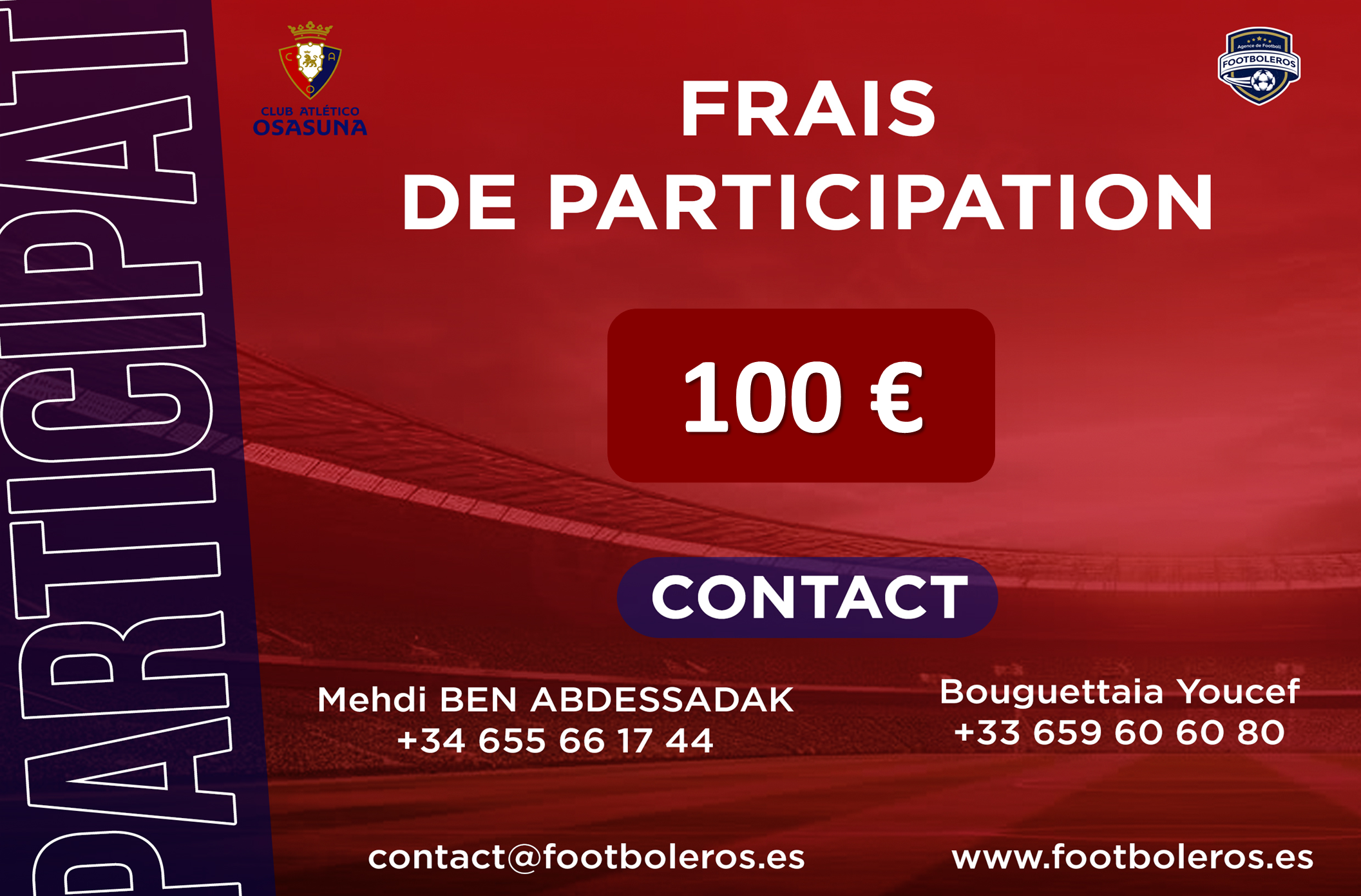 Pendant la période d’essai, les joueurs auront l’occasion de montrer leurs qualités et leurs conditions de jeu aux représentants de Club Atlético Osasuna, afin qu’ils puissent évaluer et déterminer leurs profils.