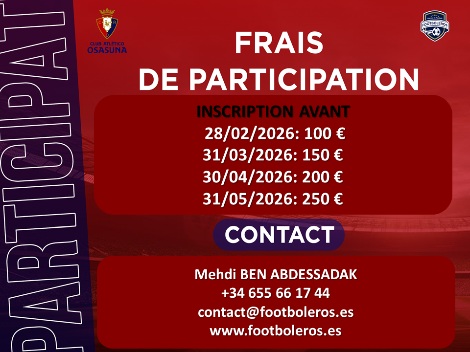 Pendant la période d’essai, les joueurs auront l’occasion de montrer leurs qualités et leurs conditions de jeu aux représentants de Club Atlético Osasuna, afin qu’ils puissent évaluer et déterminer leurs profils.