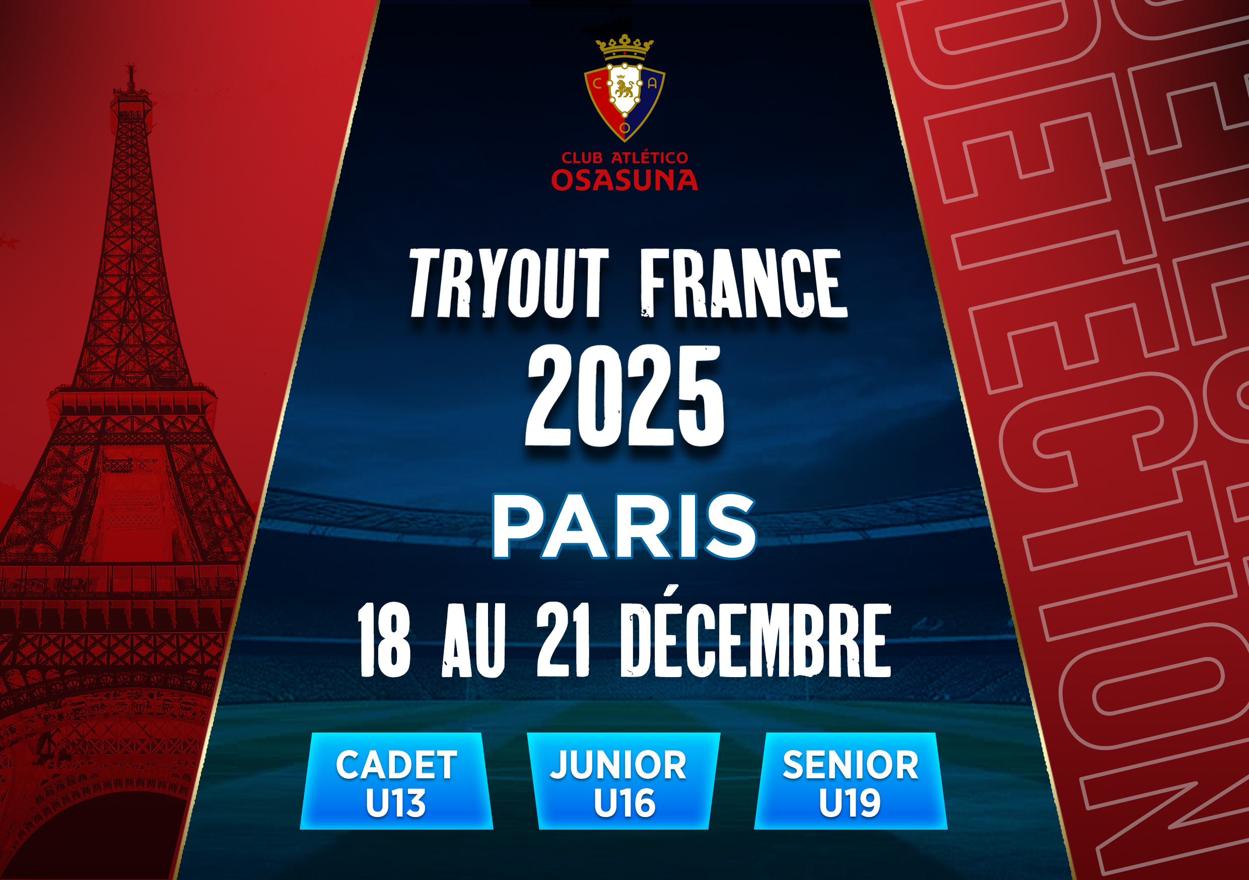 CLUB ATLETICO OSASUNA TRYOUT FRANCE 2025 - PARIS - 18 au 21 Décembre 2025 Notre objectif est d'aider les jeunes footballeurs talentueux à faire un pas en avant dans…